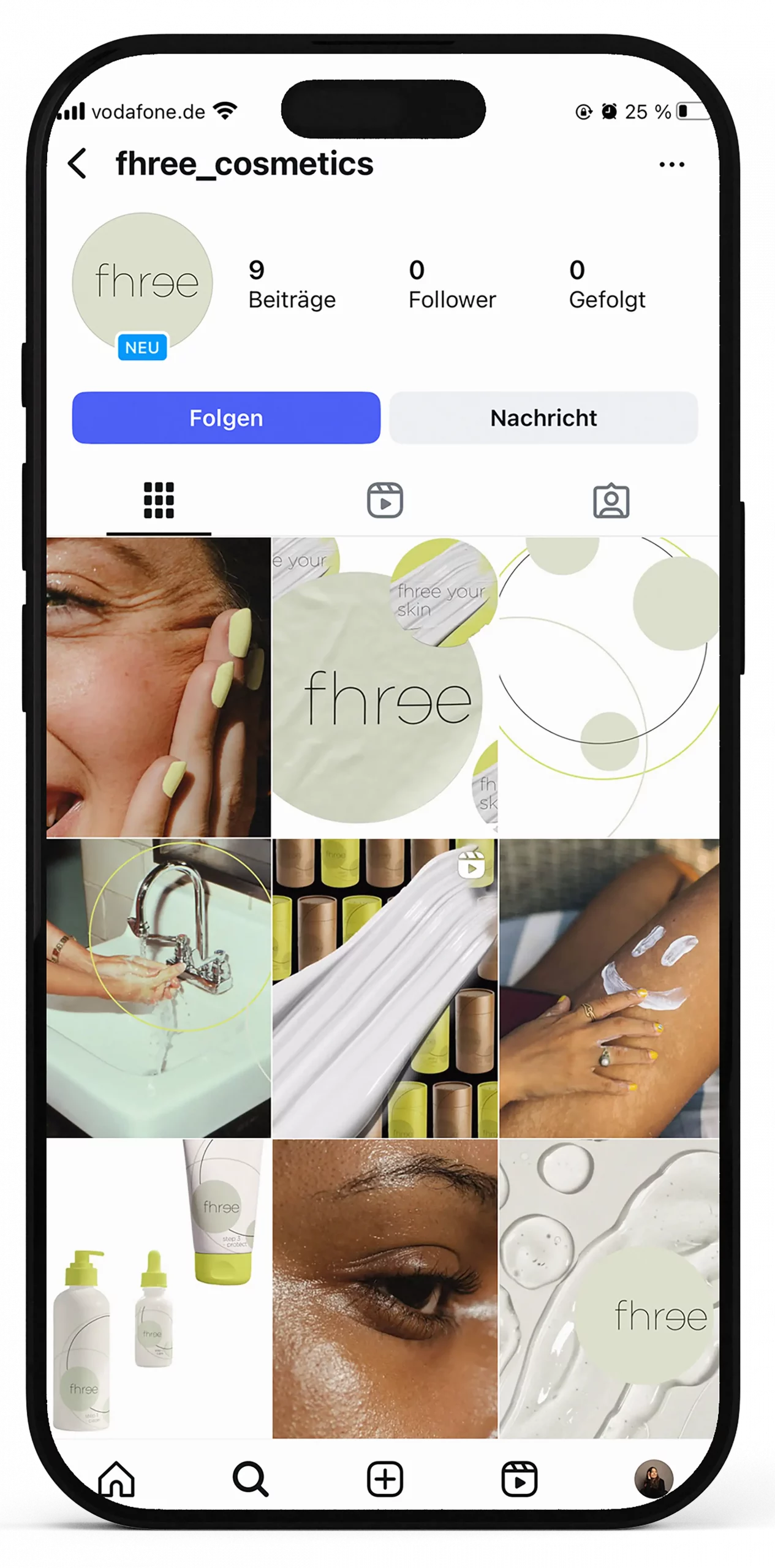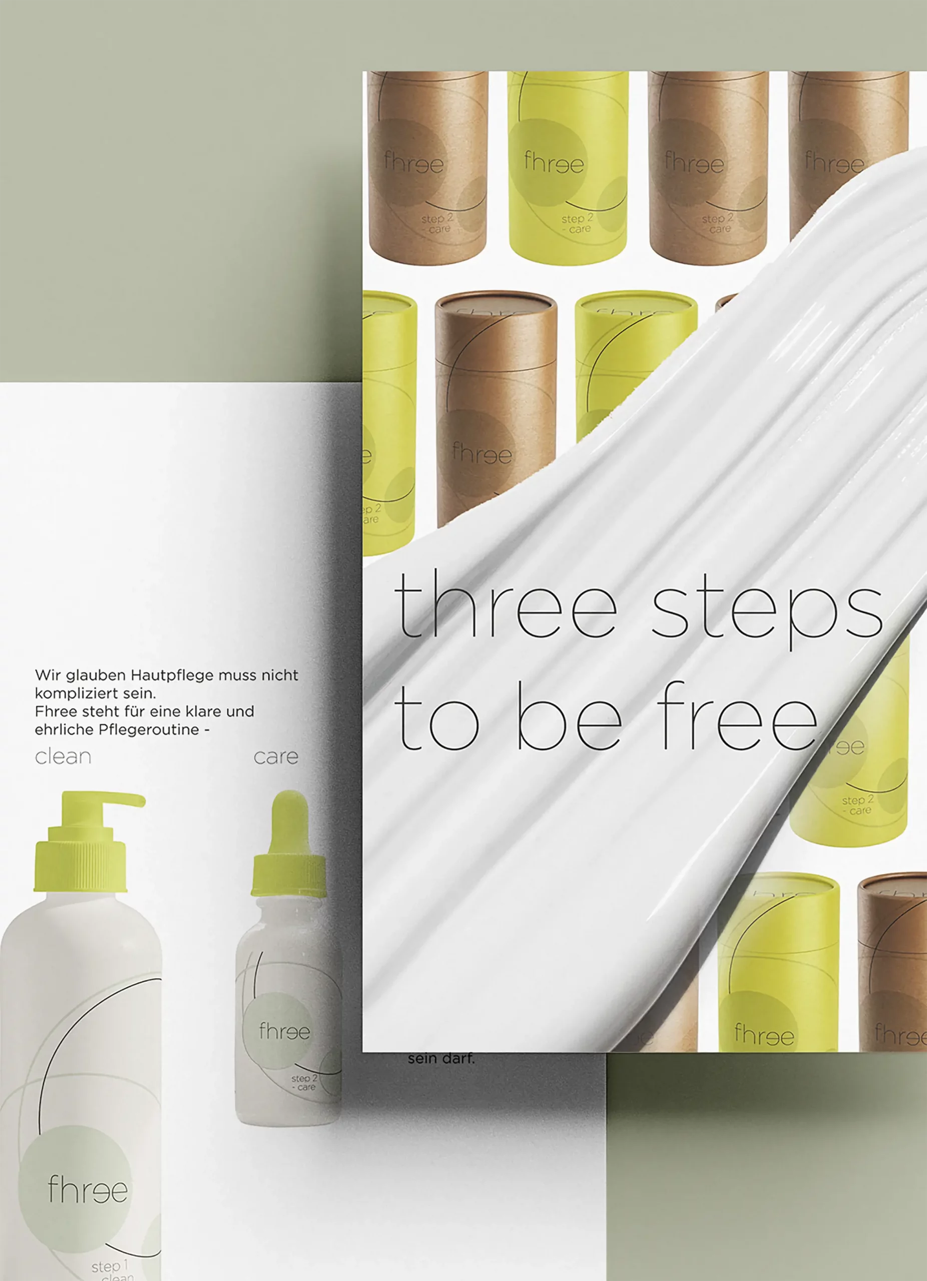 Mit „fhree“ habe ich eine genderneutrale Hautpflegemarke entwickelt, die sich gegen den Schönheitsdruck und für echte Selbstfürsorge positioniert. Der Name setzt sich aus three und free zusammen – drei einfache Schritte, frei von Erwartungen, frei von Duftstoffen, frei von tierischen Inhaltsstoffen. Pflege, die nicht perfekt machen will, sondern begleiten – egal ob für Kinder, Erwachsene oder alle dazwischen.